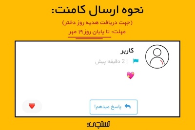 کافیه تا پایان امروز یه 💖 زیر این بلاگ بفرستی تا 1500 امتیاز هدیه روز دختر رو دریافت کنی.